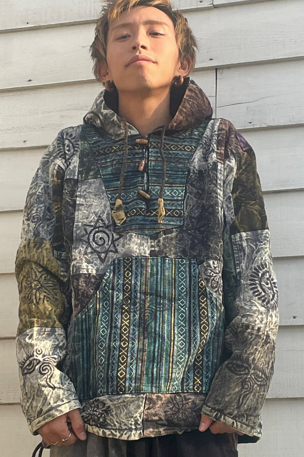 被るタイプのフード付きアウターです。