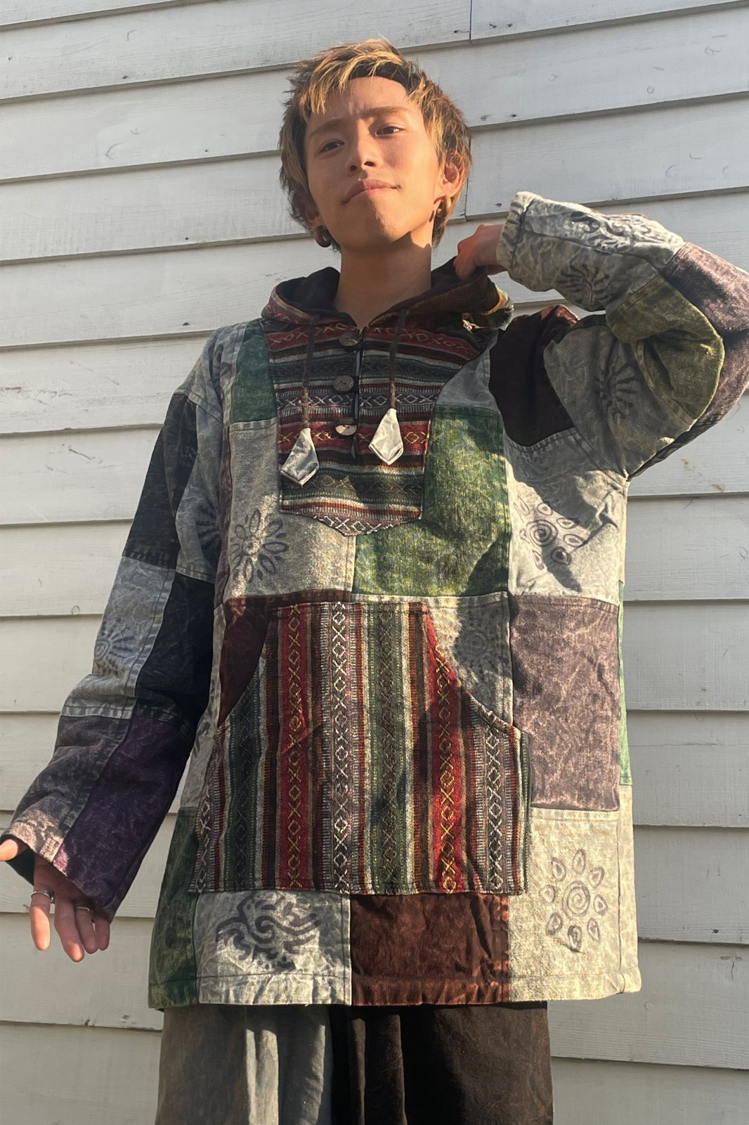 被るタイプのフード付きアウターです。