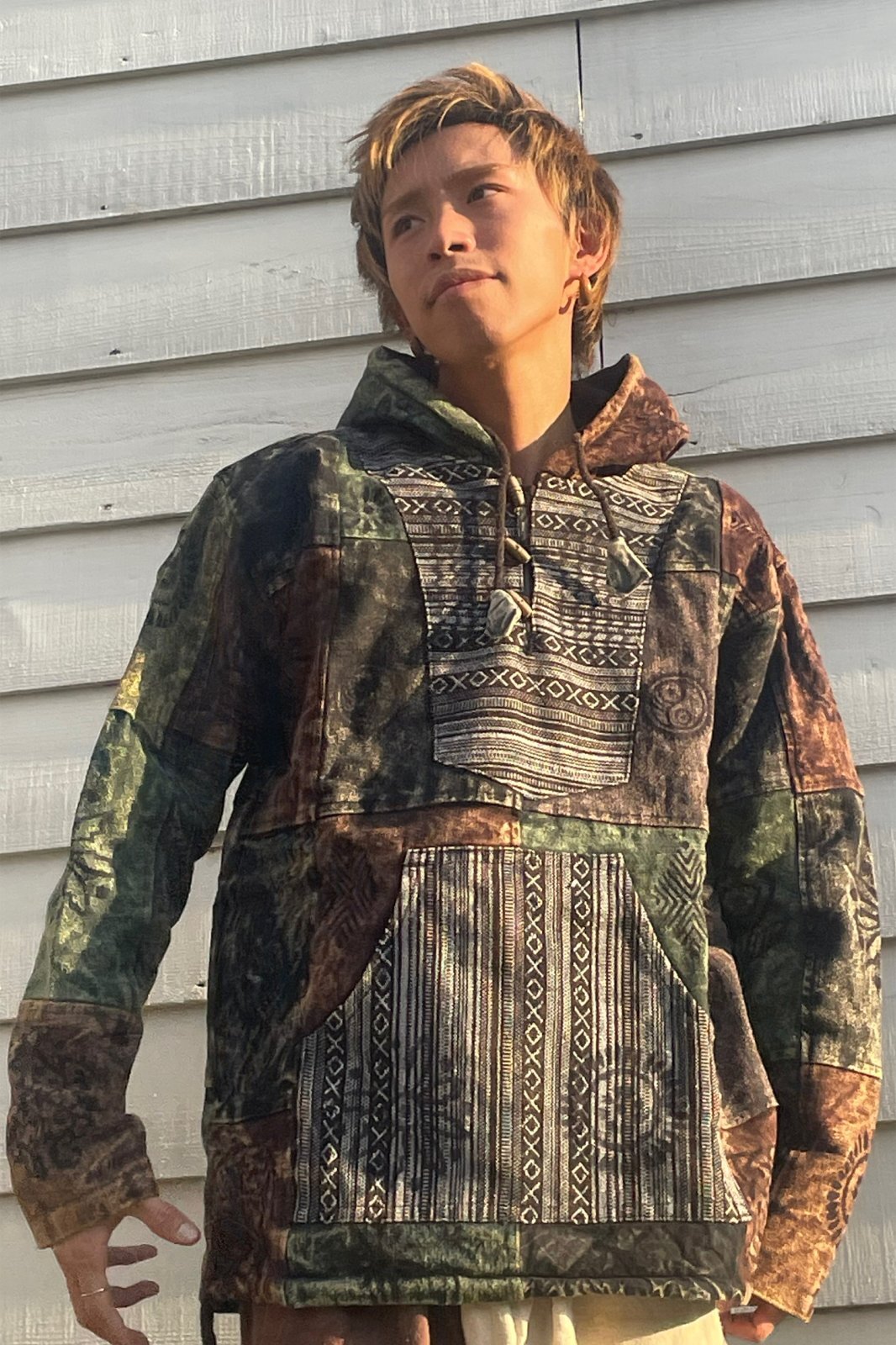 被るタイプのフード付きアウターです。