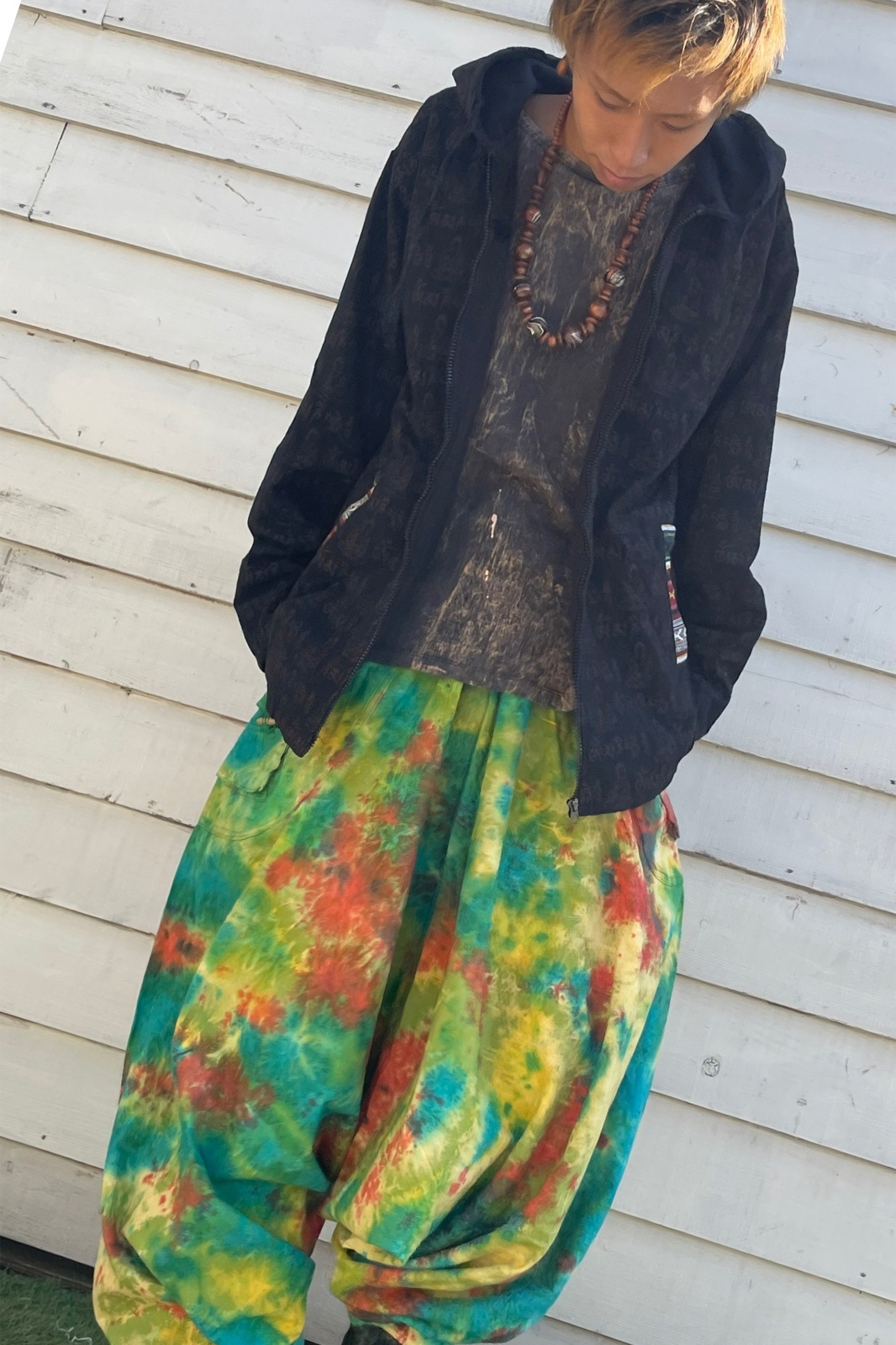仏陀プリントのアウター&タイダイサルエルのセット